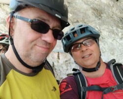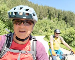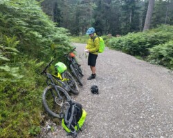 Nach dem Bahndesaster, ist leider klar, so etwas kann man derzeit NICHT mit der deutschen Bahn planen. Peinlich, peinlich. Die spontane neu Planung, Anreise per Auto und Rücktransport nach Garmisch per Bike Shuttle, klappte dagegen ohne Probleme. Auch der spontane Bike Shuttle zum Gampenpass hat super geklappt, wenn auch nicht ganz billig. Der Wettergott war auch auf unserer Seite. Die Unterkünfte von ok bis Klasse, ebenso Frühstück. Die Touren gut zu fahren, wenn auch mal anstrengend, aber das gehört ja dazu. Die Bikes haben ohne großer Panne mitgemacht. Quietschen, Schaltungsprobleme, Akku Halter gebrochen , Bremsbeläge runter, konnte alles behoben werden. Gelacht, Spaß gehabt. Jetzt erst mal etwas regenerieren 😴… Und dann mal schauen 😉