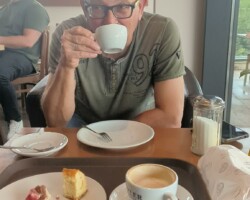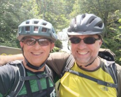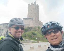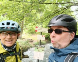 Verspätetes Frühstück bei Alex der Gamer. Leichter Regen, dann trocken. Bremsbeläge wechseln dauert 1 Stunde. Tunnel geschlossen, keine Durchfahrt. Zurück. Due Espressi und kleine Stärkung. Selbe kleine Bar wie vor 7 Jahren. Akku 🔋 laden. Brenta Bike Trail. Super schön. Schwere Anfahrt nach Andalo. Bärenland, wir reden, reden, reden…. Sehr schwere Auffahrt Andalo. Puh geschafft. Rummel in Andalo. Trailabfahrt Molveno, prima. Molvenosee. Akku fast leer. Hotel Castel Mani. Geschafft. Überlauf Pool 32°. Tolle Aussicht. Spritz und Snacks am Pool. Drei Gänge Menü auf Terrasse. Kaputt und fertig. Gute Nacht…