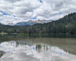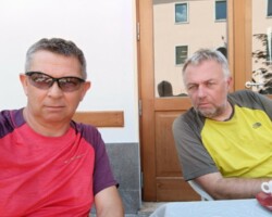 Frühstück so lala, 9:15 Abfahrt, Wetter bedeckt, windig bis stürmisch, trocken. Reschensee hat wieder Wasser. Kai macht wieder Fotosessions. Zügig schöne Abfahrt zum Espresso. Prad. Saftbar. Radbar. Leckar. Serpentinen Meran. Slums Meran. Ein paar Regentropfen die ans Fahrrad klopfen. Lana. Rundgang mit Anton. 90 Jahre Treppen Hüpfer. Wahnsinn. Pool. Rückenschonende Stühle beim Essen. Vogelkacke auf Kais Arm. Schöner warmer Abend. Nuss, Pfirsich, Obstler… Antwort A und zwei Forst, zum spülen. Morgen Shuttle zum Gampenpass oder bis Cles, da es regnen und gewittern soll.