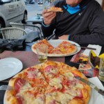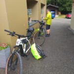 Die Königsetappe – sehr gutes Frühstück-die ersten 800 höhenmeter gehen uns locker von der Hand, da Gondelfahrt – dann 400 höhenmeter strampeln – Almöi zeigt uns den Weg – Abfahrt dauert lang – 1000 höhenmeter vernichtet – Bremsen quietschen – stehen vor Omis Fenster – Omi zeigt uns den Weg, so halb – wie kommt die bloß in das Haus 🏡? Mittagspause in St Pankraz – Nudelbombe für Ekki – aufladen – gute 800 Höhenmeter am Stück – anstrengend – echt – Regen – Regenklamotten an – Abzweig verüasst – zu weit nach unten gefahren, daher auf Straße wieder hoch – Gampenpass – Regen – Ladestation Gampenpass läuft nicht – Gaststätte laden geht – Regen – Bild machen – weiter – Regen – Stück auf dem Rankepino Trail – Regen und Gewitter – Ekki’s Bike verliert Schalter Kappe, Antrieb kann so nicht eingeschaltet werden – mit Büroklammer geht es auf Tourmodus zu schalten – brechen Rankepino Trail ab – Regen – über Straße nach Cles – auch nicht schlecht – Antrieb zickt fällt aus – geht dann die letzten Kilometer wieder – kein richtiges Hotel aber Zimmer sind prima – Bikes laden auf Klo – fertig, nass – war zu lang und anstrengend – Regen und Gewitter, Essen fällt aus – Ciao Kakao…