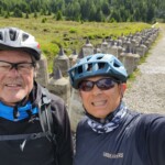 die ersten beim Frühstück – per Gondel doch hoch zum Plamort – Trail probiert – geht eher nicht – liegt sicher an den Bikes 😉 – auf den Schotter zu den Panzersperren – kette bei Ekki abgesprungen aber kein Problem – weiter zum Ausguck – runter zum Reschensee – super Radweg mit Speed – due Espressi in Prad fast wie 2017- Apfelsaftbar am Wegesrand – inzwischen sommerliche Temperaturen – tolle Unterkunft in Naturns – Waschtag – Whirlpool im Garten – Essen beim Hurtler oder so – Knödel auf Empfehlung von zwei älteren Damen – nettes Gespräch – Buona notte 🥱